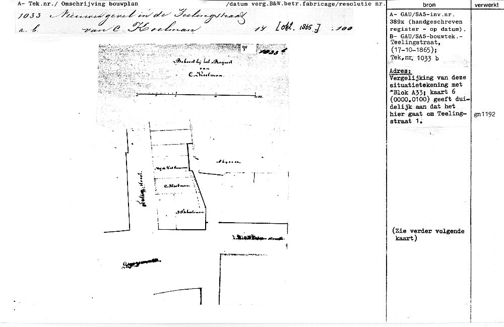 Utrecht - Teelingstraat 1 (gesloopt 1975)
