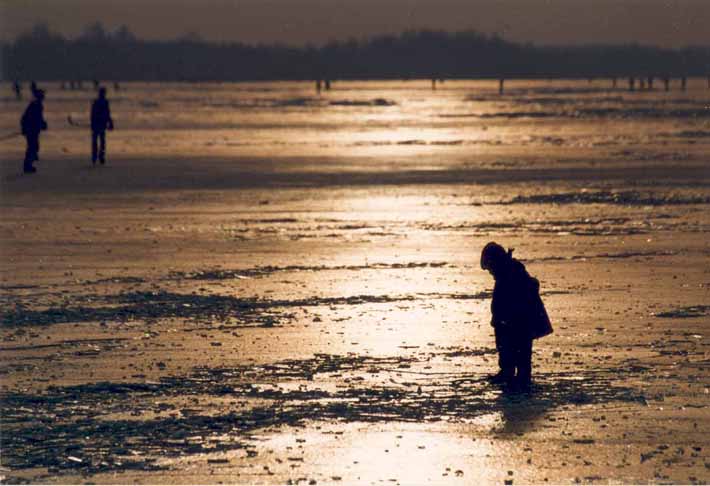 Het bevroren Veluwemeer/Wolderwijd bij Harderwijk