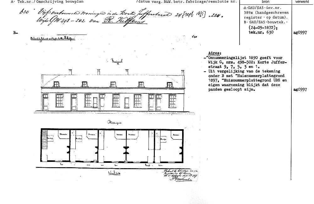 Utrecht - Korte Jufferstraat 1 e.v. - bouwplan 1872