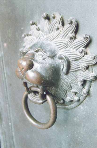 , noordportaal, bronzen deur, rechter leeuwenkop