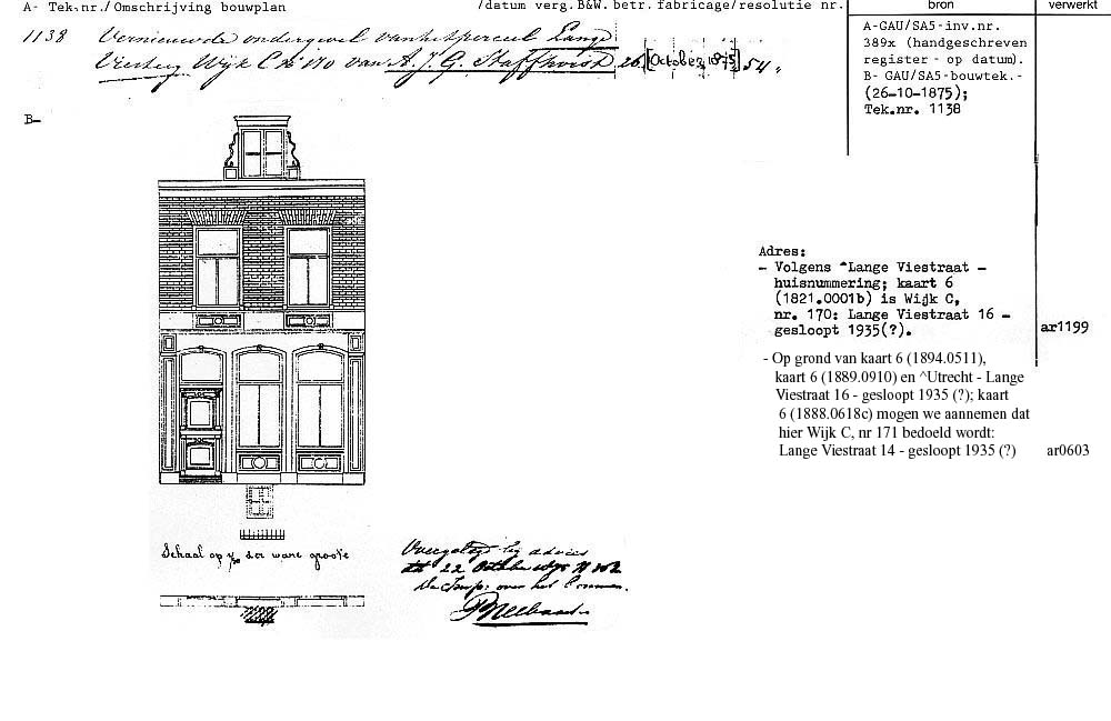 Utrecht - Lange Viestraat 14 - gesloopt (ca) 1935