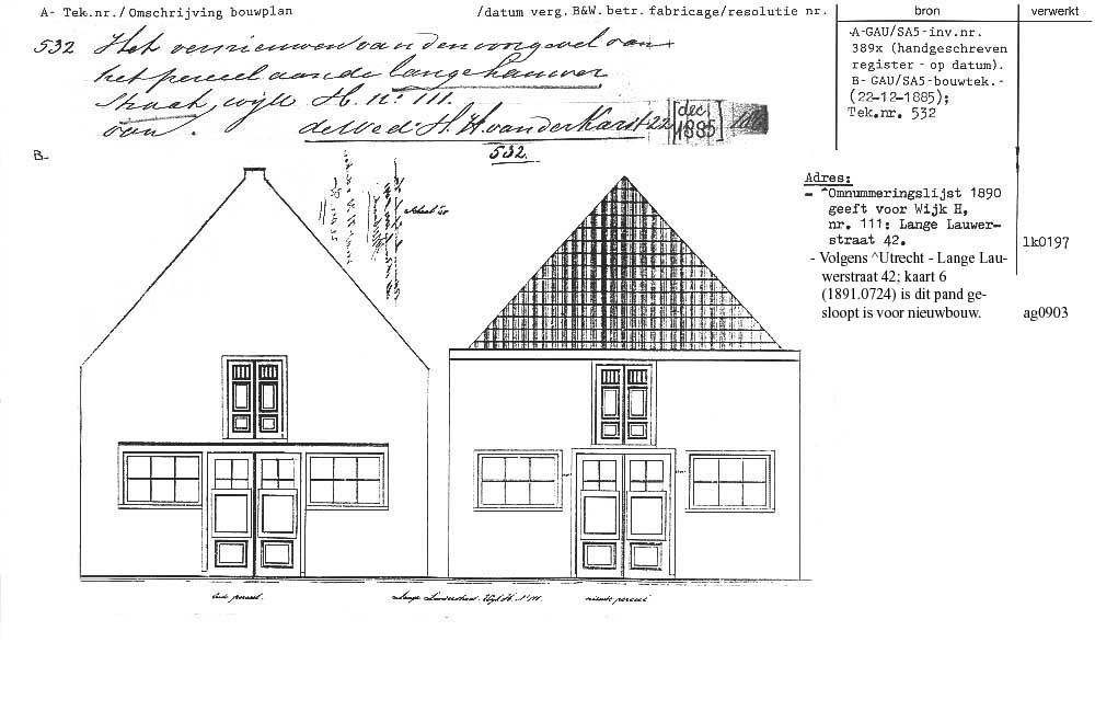 Utrecht - Lange Lauwerstraat 42 - gesloopt 1891