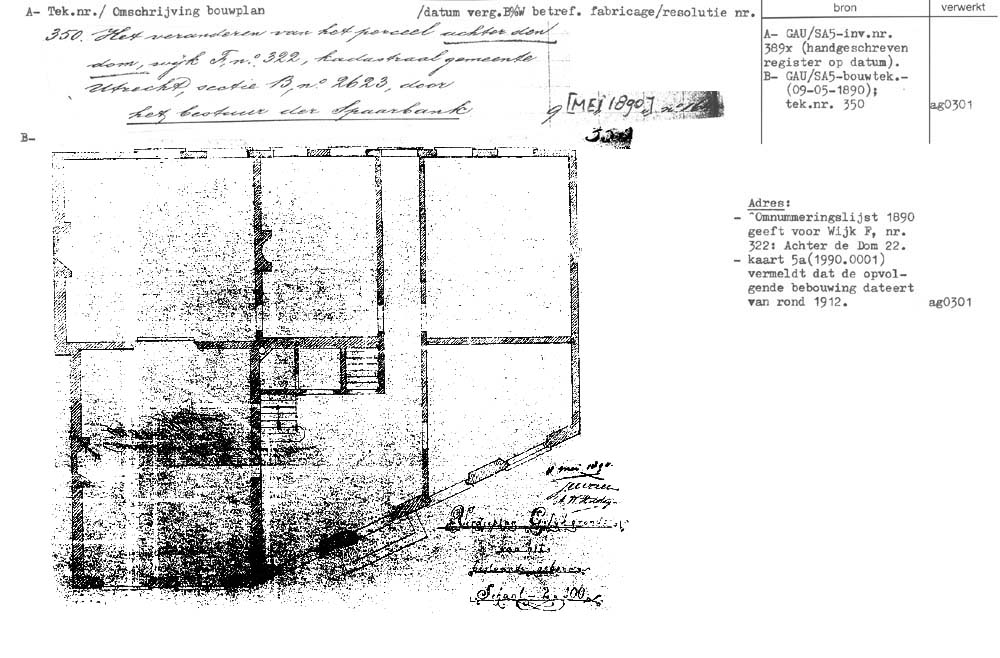 Utrecht - Achter de Dom 22 - gesloopt 1913