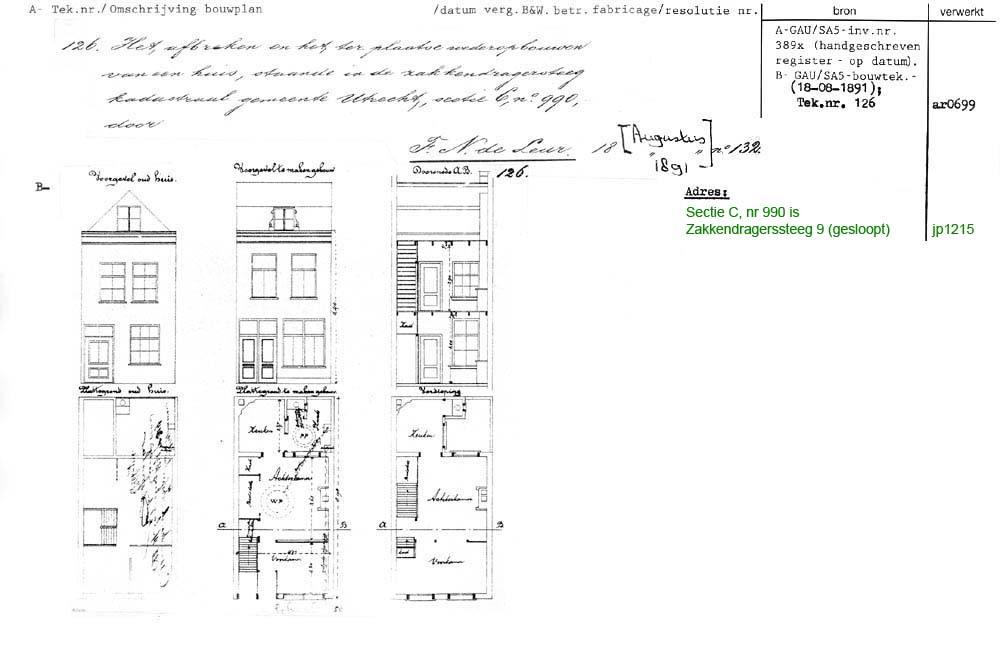 Utrecht - Zakkendragerssteeg 9 - gesloopt 1891