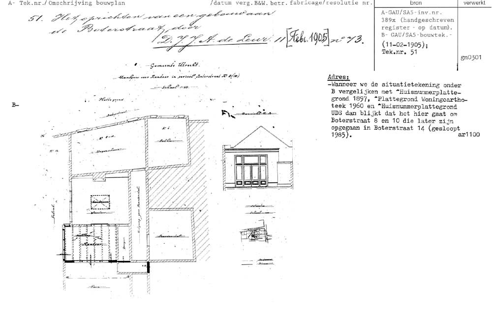 Utrecht - Boterstraat 14 (gesloopt 1985 - oud adres)