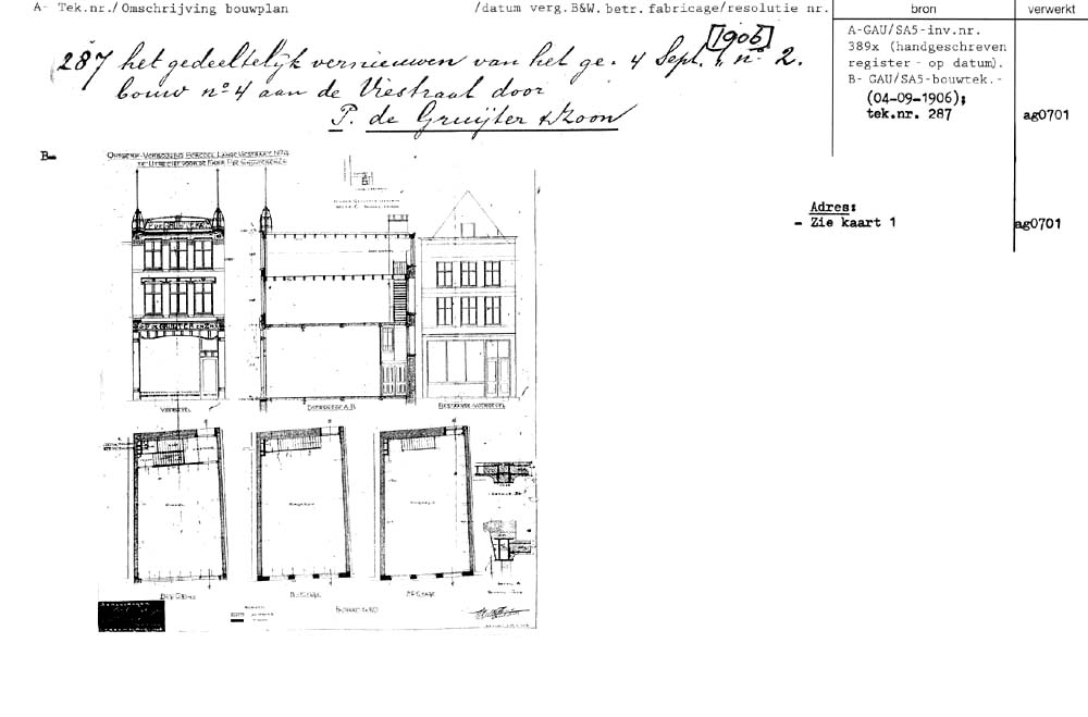Utrecht - Lange Viestraat 4 - gesloopt 1939 - oud adres