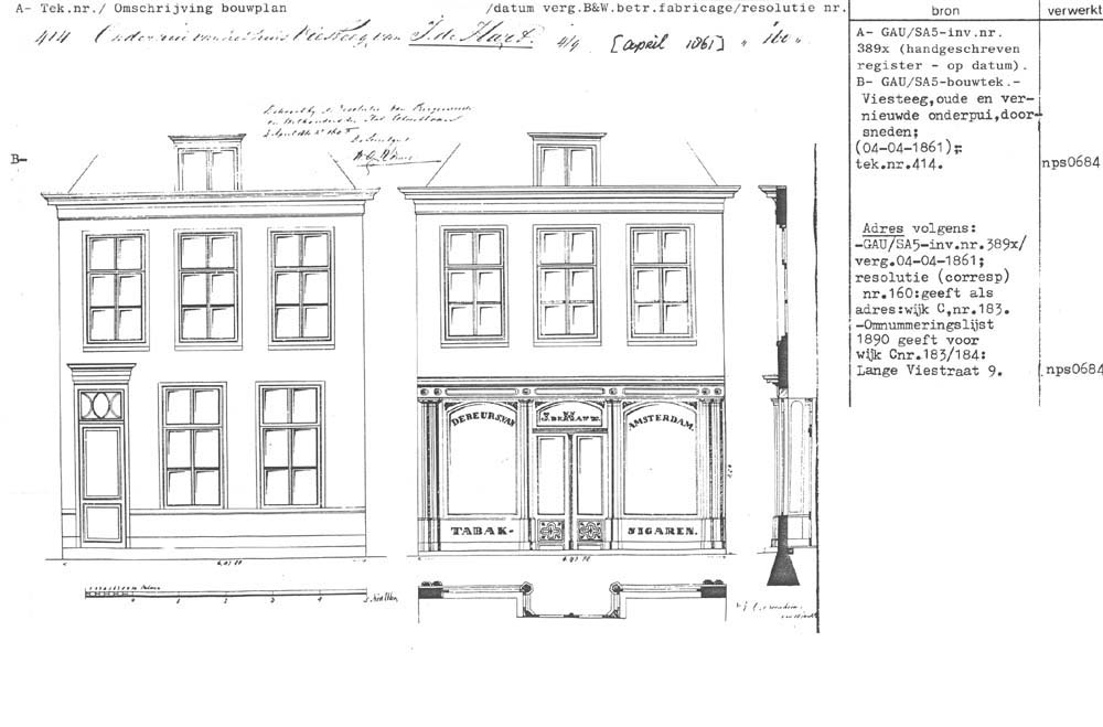 Utrecht - Lange Viestraat 9 - gesloopt (ca) 1938