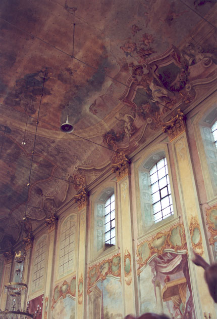 : interieur kerk met stucgewelf