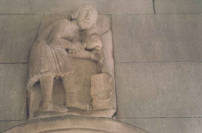 Zürich (CH) - Grossmünster: kloostergang, reliëf steenhouwer