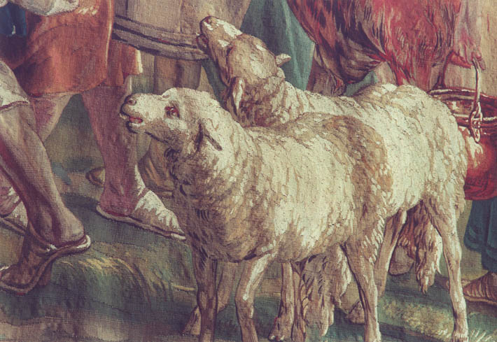 , Prinsenkamer, detail van gobelin uit 1737 door Fr. van der Borght, "Waer Moyses op de rots slaet"