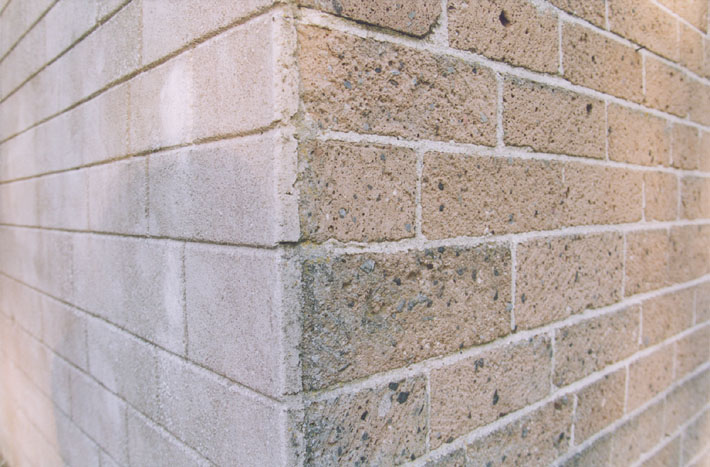 , onderste deel van de toren, rechts tufsteen, links natuursteenimitatie in pleisterwerk