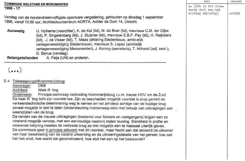 Utrecht - Tolsteegsingel - Krommerijnbrug 1998.0901