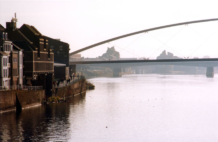 Maastricht - Hoeg Brögk: gezien vanaf Sint-Servaasbrug met op de achtergrond de Kennedybrug en het provinciekantoor