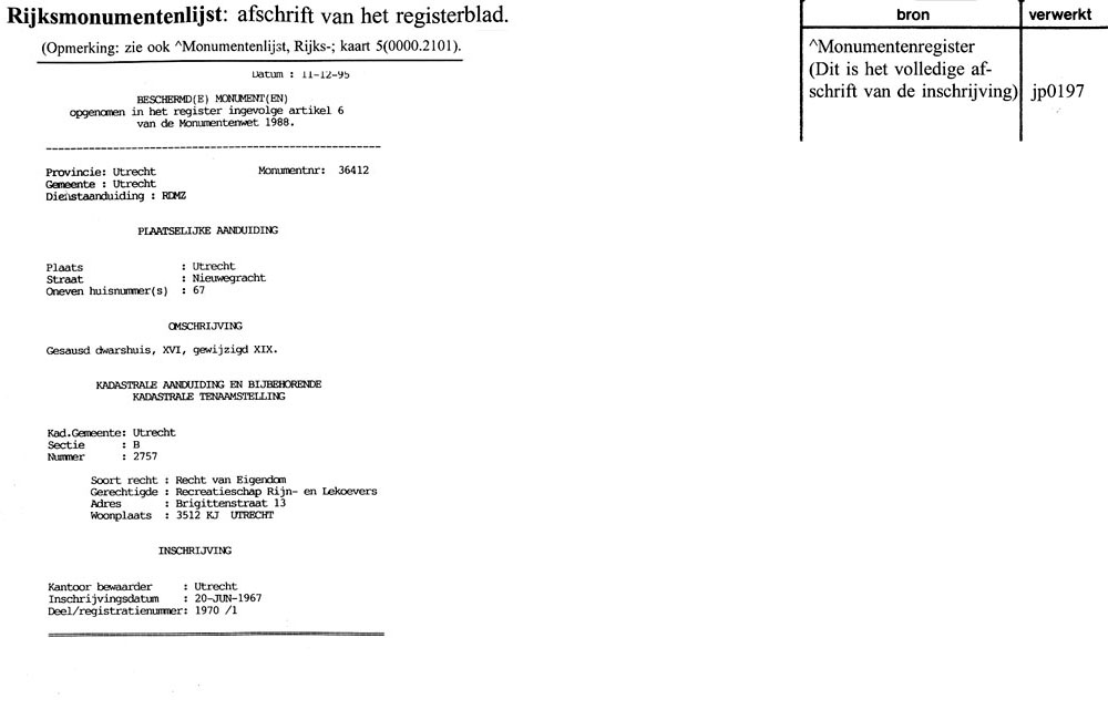 Utrecht - Nieuwegracht 67 (vervallen adres)