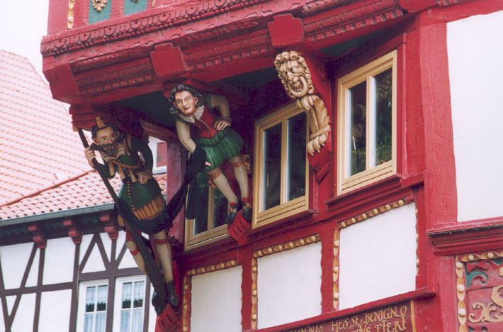Duderstadt (D) - Markt 84 oorspronkelijk gebouwd in 1620, geheel herbouwd in 1982: overstek van hoek