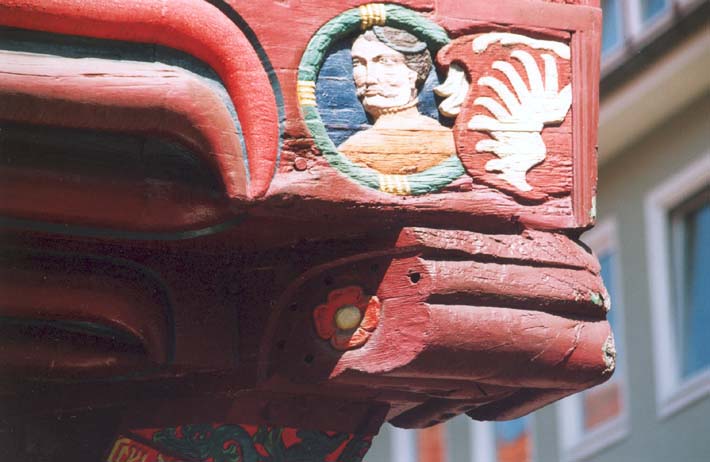 Göttingen (D) - Barfüsserstrasse 5: voorgevel, hoek overstek 1e verdieping