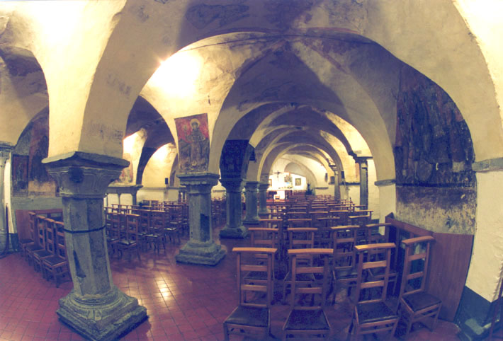 : crypte, rechter beuk naar het oosten (fish-eye opname)