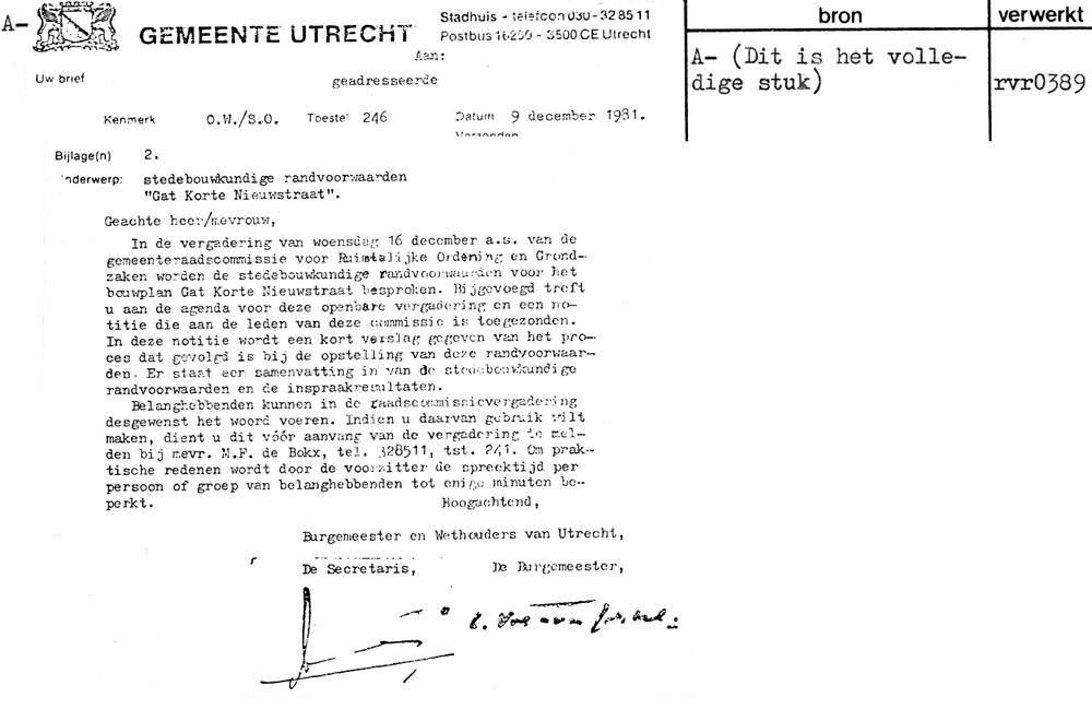 Utrecht - Korte Nieuwstraat 3 e.v. - bouwplan 1978