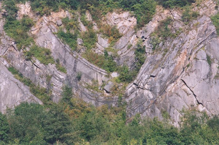 Freijr (B): rotsen langs de Maas met geplooide natuursteenlagen