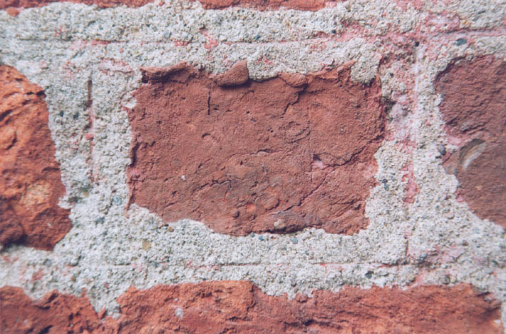 Wittingen (D) - St. Stephanus: oude buitenafwerking op steunbeer aan de zuidzijde van het koor, platvol gevoegd met dagstreep en restant kleur
