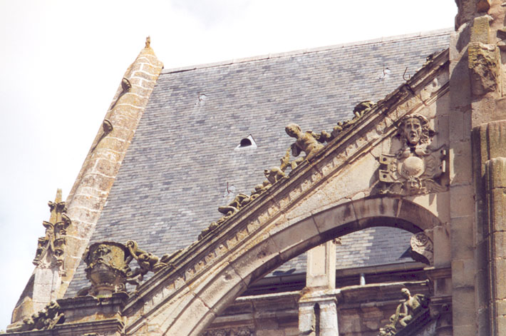 : luchtboog met figuren aan de (onvoltooide) westzijde van de kerk