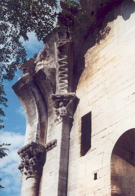 opmerkingen : Saint-Gilles (F) - abbaye Saint-Gilles: restant afgebroken deel van de kerk, zigzagornament in boog