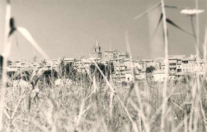 opmerkingen : Fréjus (F) - Cathédrale Notre-Dame: gezicht op Fréjus vanuit de voormalige Romeinse haven (uit het zuiden). Torens v.l.n.r: klokkentoren, toren bisschoppelijk paleis en toren op het koor