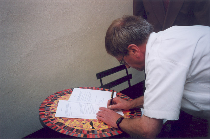 opmerkingen : Utrecht - Jansveld 4 e.v. - Margaretenhof: inluiden klokje aan Jansveld 16. De overdracht wordt ondertekend door Peter van Rijn