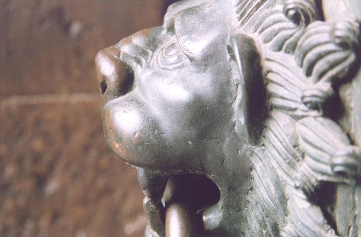 , noordportaal, bronzen deur (ca 1000), detail linker leeuwenkop (13e eeuw)