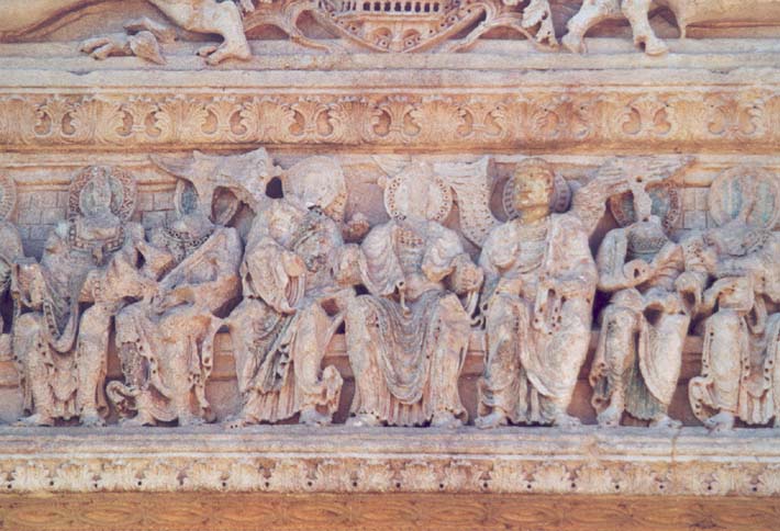opmerkingen : Charlieu (F) - abbaye Saint-Fortunat, noordgevel van de narthex, detail van het grote portaal, latei