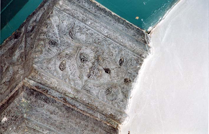 , op 1e verdieping, voorkamer, linkerzijde, detail natuurstenen balkconsole
