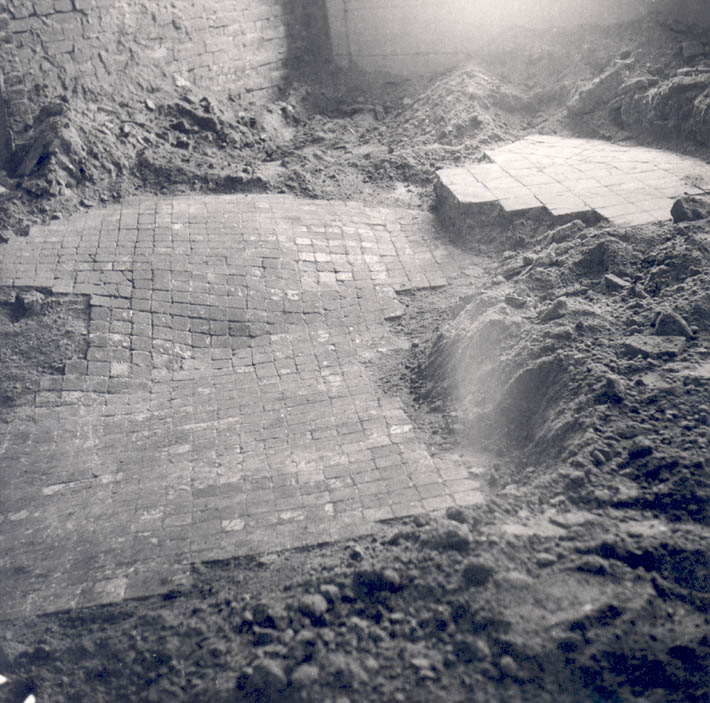 : 14e eeuwse vloer gevonden onder 16e eeuwse vloer. Hieroverheen lag een 18e eeuwse vloer