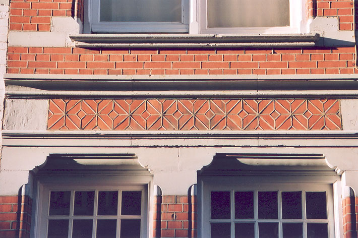 : siermetselwerk met geknipte voegen (aan de slagschaduw is het uitsteken van de voegen te zien)