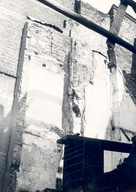 (binnenzijde kerk) te zien na de sloop van Minrebroederstraat 2