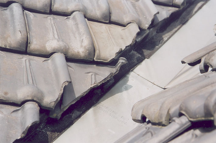 Harderwijk - Zandlaan 9: kruispannen en behakte dakpannen bij kilgoot