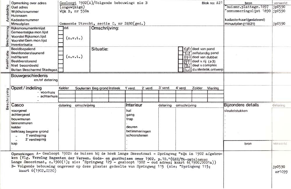 Utrecht - Springweg 131 - gesloopt 1902 - oud adres