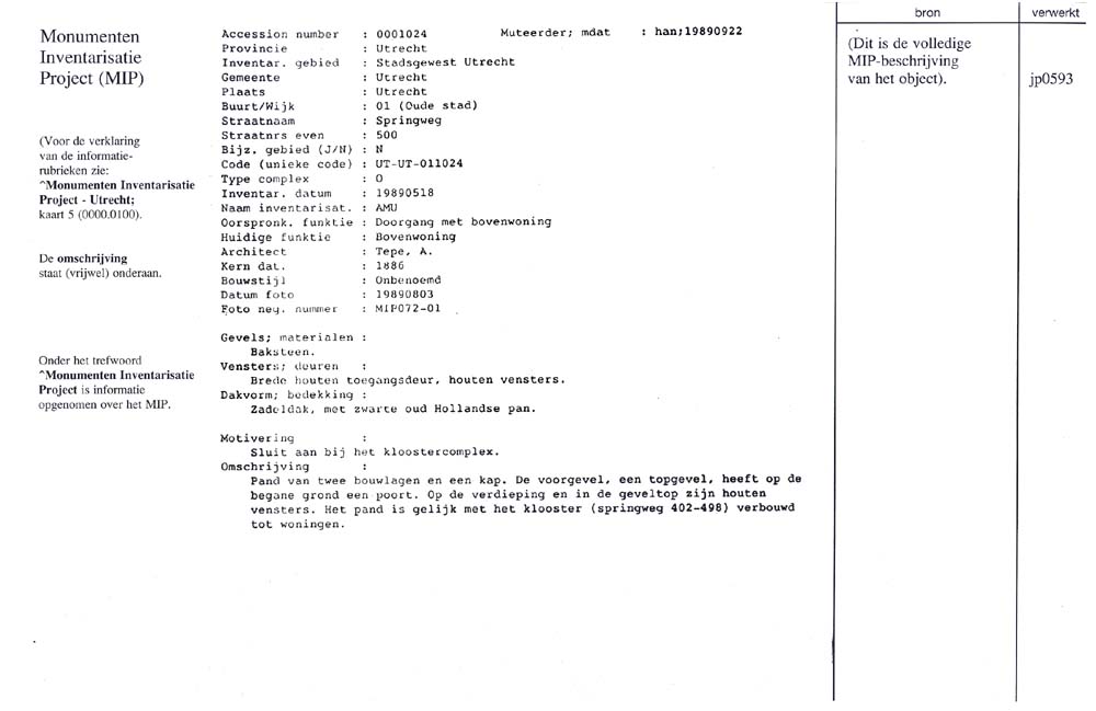 Utrecht - Springweg 142 (oud adres) - poortgebouw
