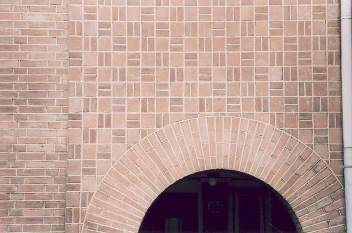 , siermetselwerk in blokverband boven het rechter portiek in de voorgevel.