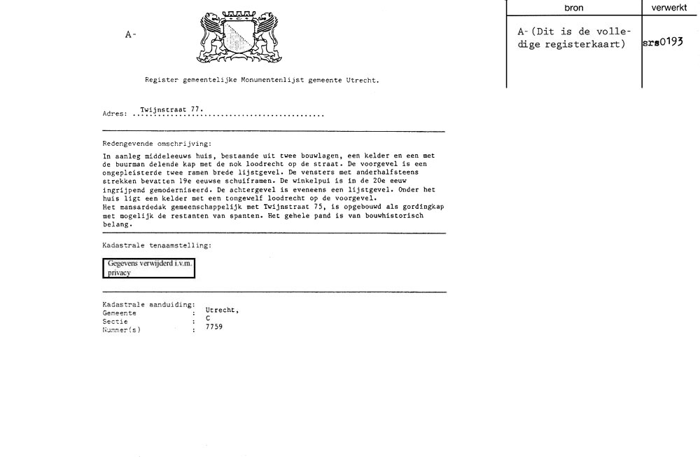 Utrecht - Twijnstraat 77