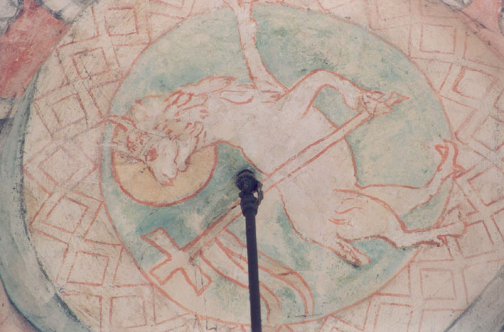 Leermens - Ned. Herv. kerk: koor, centrum van sluiting van het gewelf met daarin afgebeeld het Lam Gods
