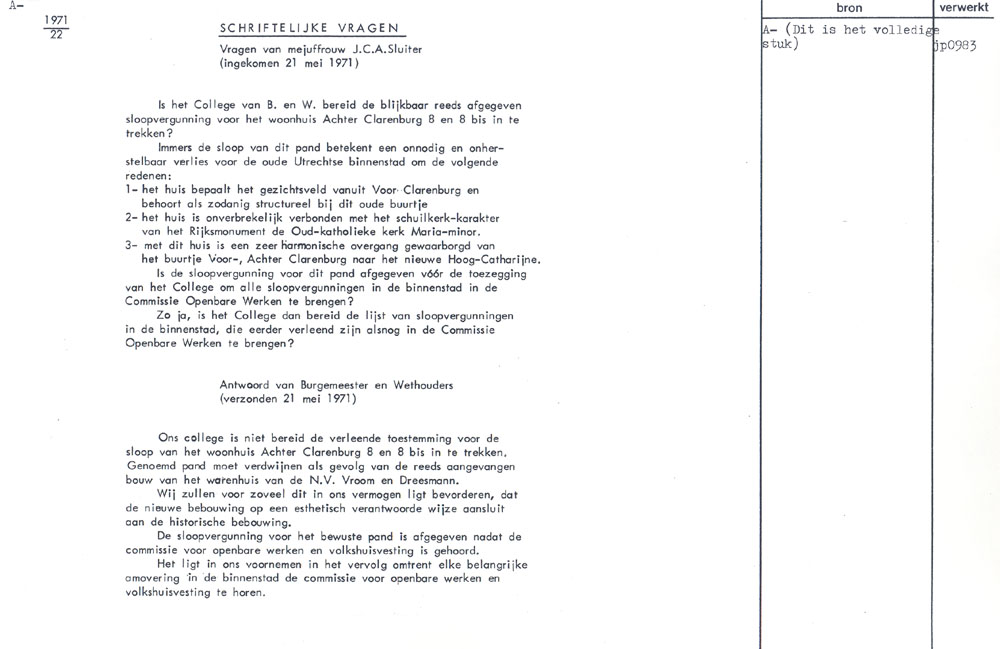 Utrecht - Achter Clarenburg 8 - gesloopt 1971