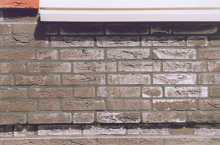 Tiel - Damstraat 64: linker gevel, nieuwbouw, zoutuitbloei