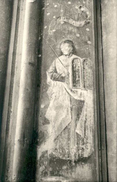 : muurschildering tegen de noord-oostelijke pijler van het koor, omstreeks 1460, Mozes