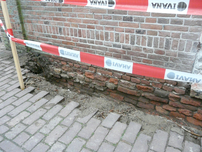(nu Bruntenhof 16), gevel aan de Schalkwijkstraat tijdens werk aan de fundering.