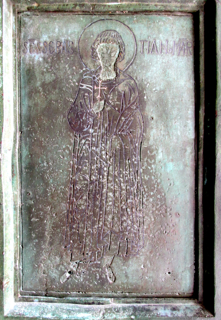 uit 1087, vermoedelijk gemaakt in Byzantium. Detail van de rechter deurvleugel