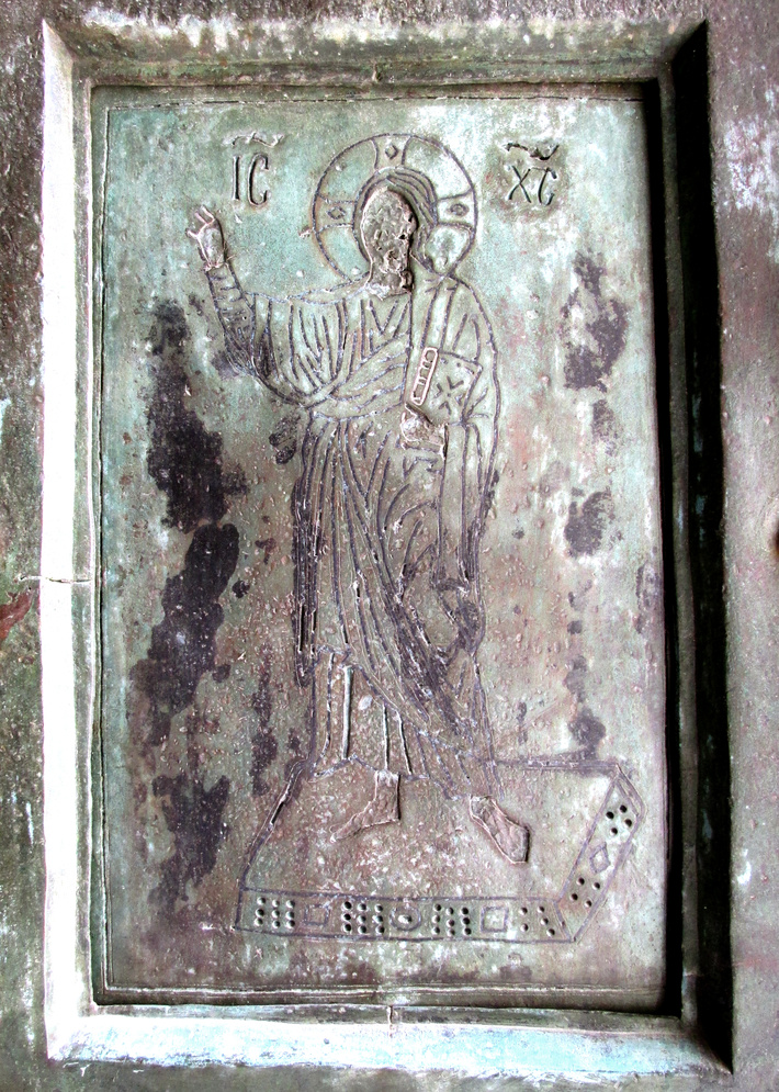 uit 1087, vermoedelijk gemaakt in Byzantium. Detail van de rechter deurvleugel