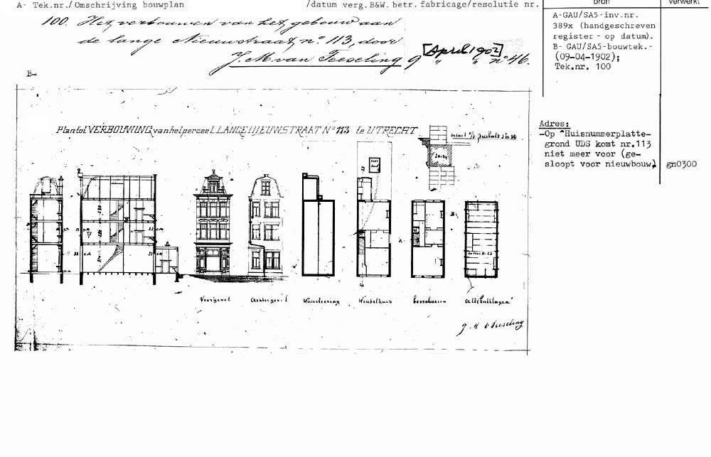 Utrecht - Lange Nieuwstraat 113 - gesloopt 1970 (oud adres)