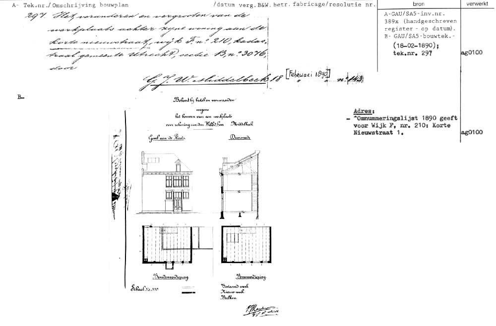 Utrecht - Korte Nieuwstraat 1 - gesloopt 1963