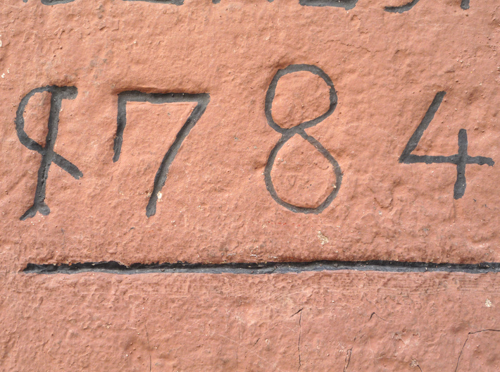 Wertheim (D) - Rathausgasse - Blaues Haus, detail hoogwatersteen met het jaartal 1784