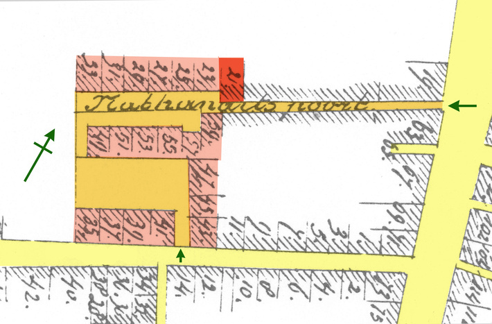 Springweg 21 is donkerder rood gekleurd (nummer 21).